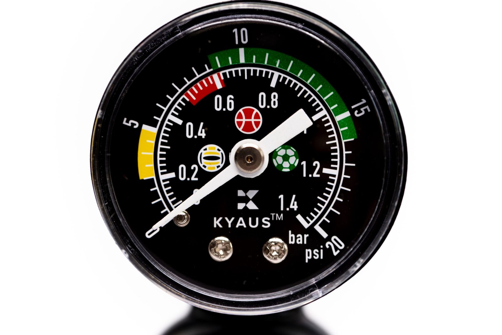 ● Precise Pressure Gauge: Kyaus ball pump can inflate your ball accurately, the gauge measures the amount of air in ball, reading in both PSI and BAR scales, range up to 20 PSI/1.4 BAR. Different colors provide an easy PSI reference for basketball, soccer ball and volleyball.